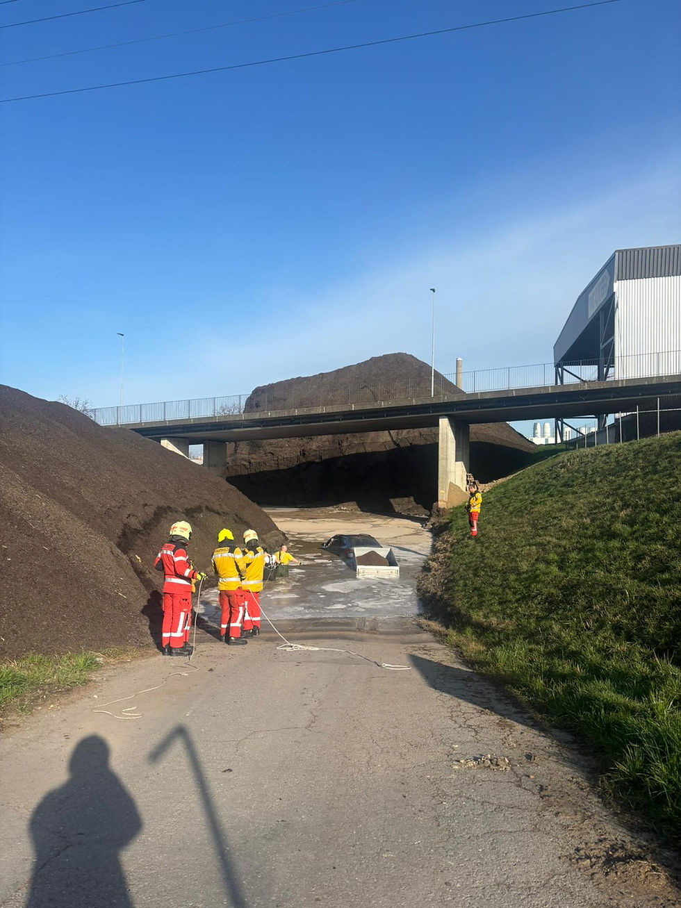 Technische Hilfeleistung, in Frauenfeld, Mattstrasse, PW in Wasserbecken gefahren, Person im Fahrzeug, Fenster verschlossen
